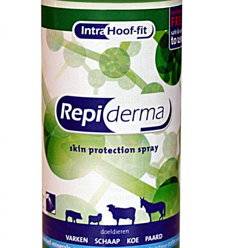 Repiderma is a user-friendly, skin and hoof protection aerosol spray with immediate effect. It is used for mud fever and thrush but also helpful on minor cuts and abrasions as it forms a protective, yet breathable layer to keep out dirt and wet. It tackles any possible infection with chelated minerals. Repiderma is antibiotic free.
