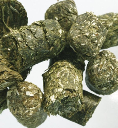 PRE ALPIN WIESENCOBS are an ideal basic feed in extra large cob format. They are made up of a unique mixture of over 60 different grasses and herbs of the Bavarian foothills of the Alps.
