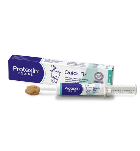 Protexin Quick Fix is a highly concentrated probiotic and prebiotic paste to rapidly re-establish the horses gut microflora in times of stress or change, including travelling, worming and antibiotic treatment.