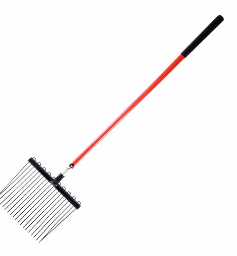 Spring steel tines are designed to be flexible in order to follow the floor of the bed and then to return into place. Designed to allow shavings to fall through the tines whilst leaving the manure behind making valuable savings in bedding costs. Allows the operator to easily rebuild and shape the bedding in the stable. Perfectly balanced - makes mucking out less back breaking! Tough long lasting finish. Superior quality FYNA-LITE Shavings forks use very strong but lightweight high specification steel & high-carbon spring steel wire tines.