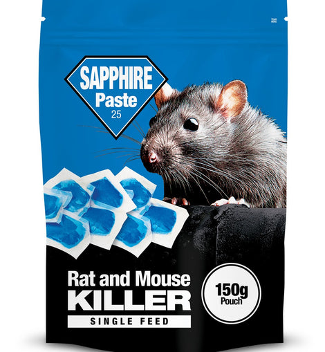 Sapphire Paste is a highly attractive bait packed with peanut oils and cereals making it very palatable to rodents ensuring infestations are controlled fast. The strength of Sapphire Paste 25 offers the user a great solution to control large infestations of rats quickly when other baits might not work.