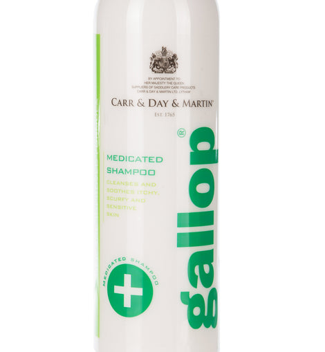 Gallop® Medicated Shampoo is a high specification formula ideal for dry, flaky, itchy, scurfy and sensitive skin. Soothes and calms irritated, sore, damaged and sensitive skin. The pH neutral formula contains natural oils that helps soften and lift scabs and dandruff. Provides exceptional conditioning, noticeably softer hair and a shiny coat.