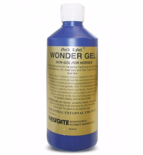 Wondergel is a powerful natural skin gel for horses. It is a truly unique product to assist the natural healing process. Ingredients include comfrey, a source of Allantoin said to encourage the growth of new tissue, Calendula, for a natural source of Phenols, Tea Tree Oil from Australia which has been used for centuries for its anti-bacterial, antifungal and insect repellent properties, Rosemary Oil to help maintain hair growth and moisturising Aloe Vera. Penetrates deeply and is non irritant.
