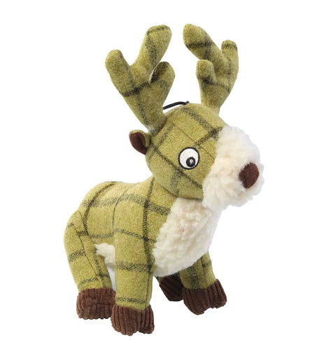 A fun plush green tweed dog toy with faux sheepskin features. Contains a squeaker. Supervision advised at all times. Please remove toy if it becomes torn or ripped.