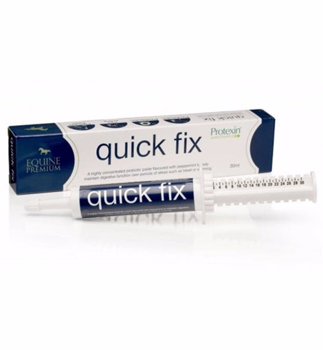 Protexin Quick Fix is a highly concentrated probiotic and prebiotic paste to rapidly re-establish the horses gut microflora in times of stress or change, including travelling, worming and antibiotic treatment.