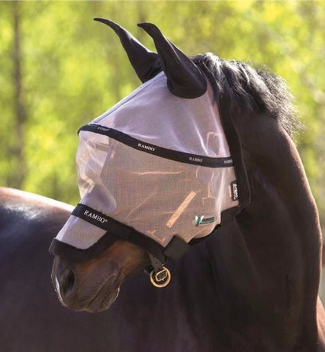The Rambo Vamoose Fly Mask is made with a strong and durable mesh body that features a firm mesh ‘eye guard’ over the eyes to prevent the mesh from irritating your horse’s eyes and eye lashes.
