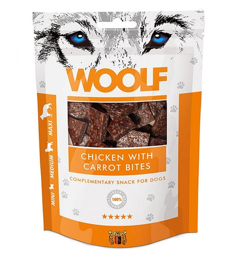 These Chicken with Carrot Bites snacks are made of 100% protein sources to provide the highest quality and the best nutritional intake. The Woolf snack, once cooked, is packed without any chemical additives, preservatives or colourings. To ensure the conservation, an oxygen absorber is placed within the bag.