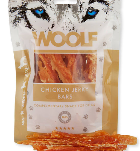 These Chicken Jerky Bars are made of 100% protein sources to provide the highest quality and the best nutritional intake. The Woolf snack, once cooked, is packed without any chemical additives, preservatives or colourings.